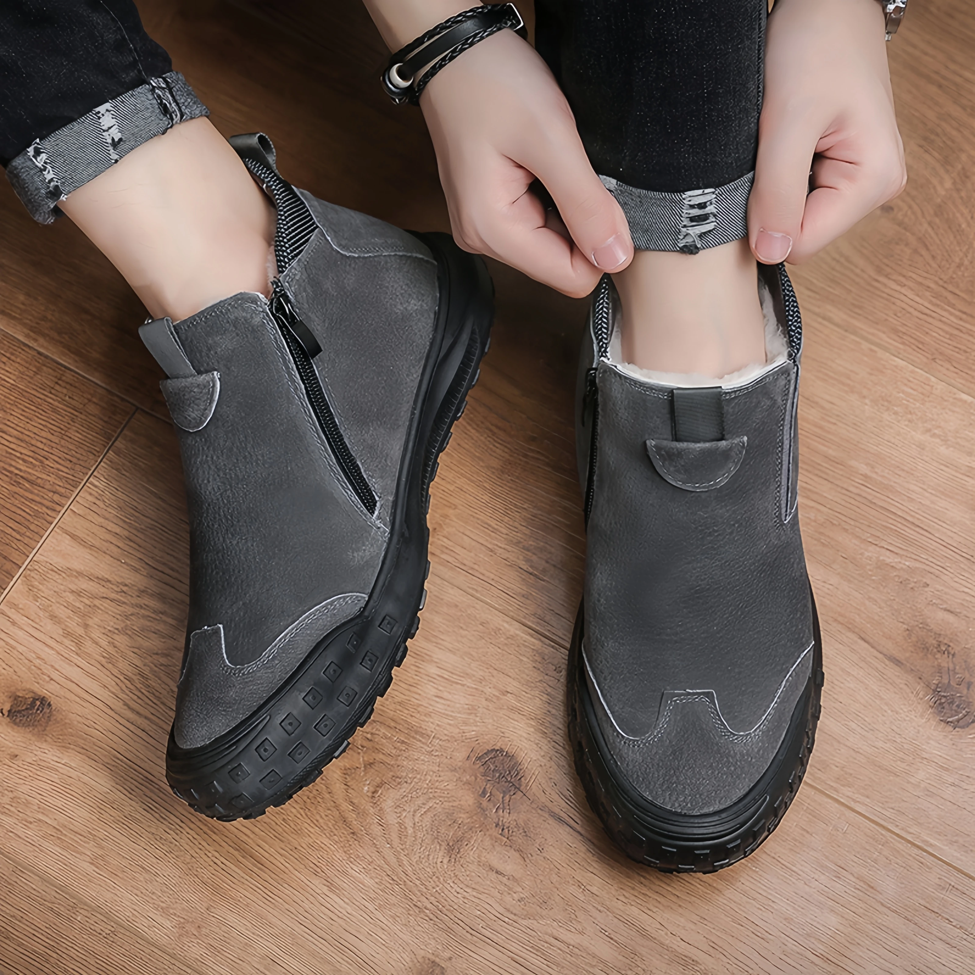 Y 39-44 Winter New Men's Thickened High-top Warm Work Shoes with a Fashionable and Simple Design Trendy Ankle Boots